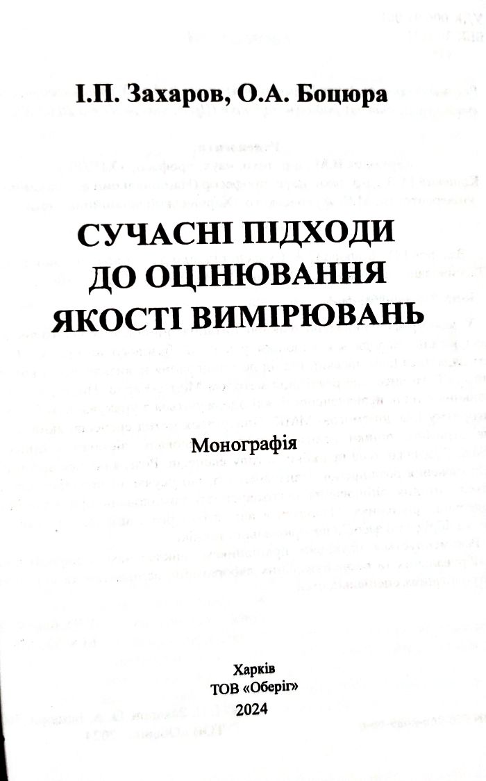 Захаров І. П. Сучасні підходи до оцінювання якості вимірювань : монографія / О. А. Боцюра, І. П. Захаров. – Харків : Оберіг, 2024. – 100 с. – ISBN 978-966-8689-66-6.