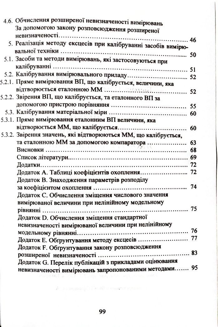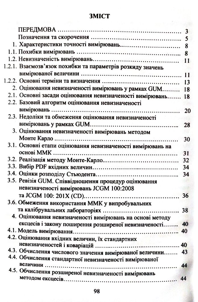 У монографії викладено основні питання невизначеності вимірювань. Наводяться недоліки реалізації базового алгоритму GUM. Розглядається байєсівський підхід до оцінювання невизначеності вимірювань та його чисельна реалізація методом Монте-Карло.Проводиться порівняння оцінок невизначеності, які одержуються з урахуванням базового алгоритму і за допомогою ММК. Описується метод ексцесів, який дозволяє отримати оцінки невизначеності вимірювань, зіставні з оцінками ММК. Розглядаються недоліки методу ексцесів. Пропонується закон розповсюдження розширеної невизначеності, що усуває ці недоліки. Описуються питання оцінювання невизначеності вимірювань при нелінійних модельних рівняннях. Наводяться алгоритми реалізації методу ексцесів при калібруванні засобів вимірювальної техніки. Рекомендується науковим працівникам, викладачам, співробітникам калібрувальних та випробувальних лабораторій, аспірантам та студентам метрологічних спеціальностей.