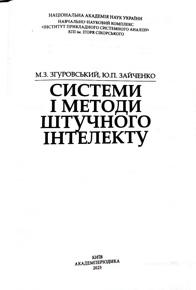Згуровський М. З. Системи і методи штучного інтелекту : підручник / Ю. П. Зайченко, М. З. Згуровський ; НАН України, ННК ІПСА КПІ ім. Ігоря Сікорського. – Київ : Академперіодика, 2025. – 744 с. – ISBN 978-966-360-551-7.