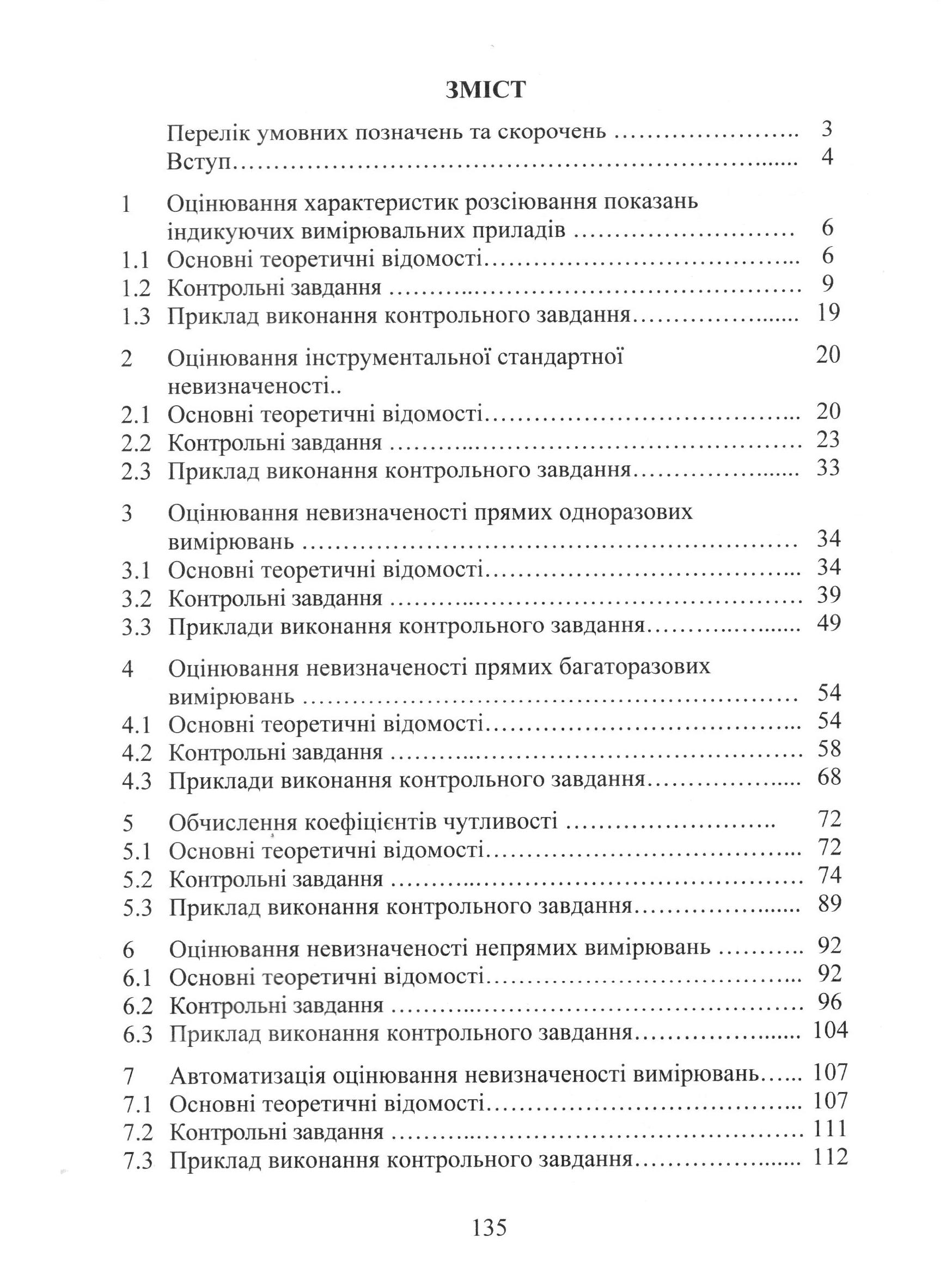 Розглянуто застосування математичних операцій, які необхідно виконувати під час оцінювання невизначеності вимірювань: отримання статистичних оцінок розсіювання показань індикаційних вимірювальних приладів; розрахунок стандартної інструментальної невизначеності вимірювань повірених та відкаліброваних засобів вимірювальної техніки; правила розрахунку сумарної стандартної та розширеної невизначеності для прямих одноразових та багаторазових вимірювань; техніка розрахунку частинних похідних при отриманні коефіцієнтів чутливості; процедура оцінювання невизначеності непрямих вимірювань з урахуванням кореляції між результатами вимірюваньвхідних величин; складання бюджетів невиначеності для всіх видів вимірювань; застосування методу частиннихприрощень та методу Монте-Карло для автоматизації оцінювання невизначеності вимірювань. Призначено для студентів, аспірантів та викладачів ВНЗ, а також фахівців у галузі метрології і вимірювальної техніки.