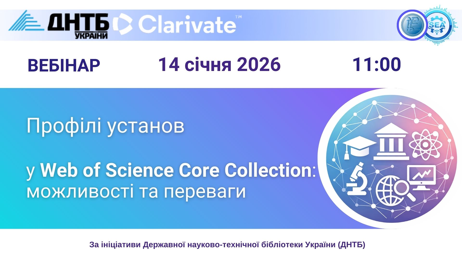 Безкоштовний вебінар «Профілі установ у Web of Science Core Collection: можливості та переваги»