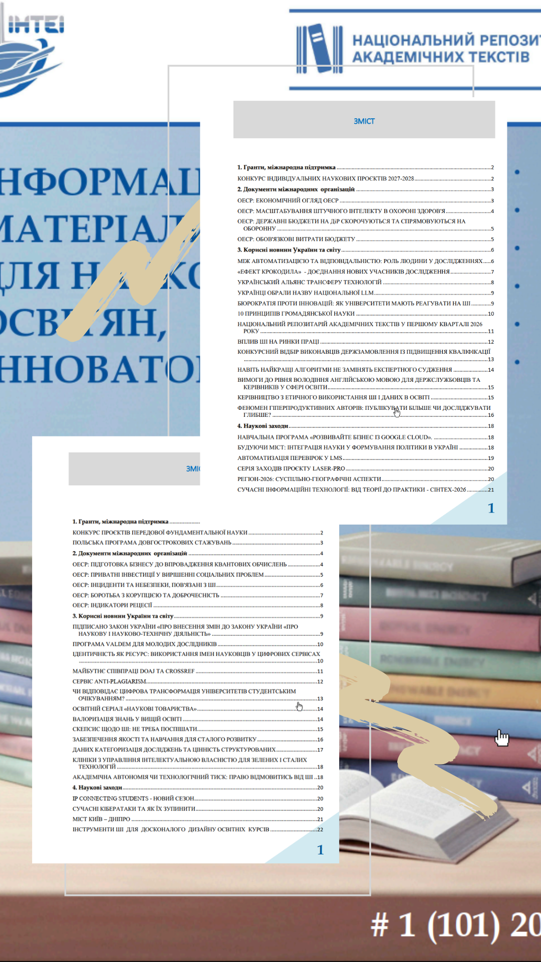 Пропонуємо ознайомитися з черговими дванадцятим та тринадцятим у цьому році дайджестом Національного репозитарію академічних текстів. У ньому представлена інформація про актуальні документи міжнародних організацій, корисні новини України і світу, гранти та наукові заходи.